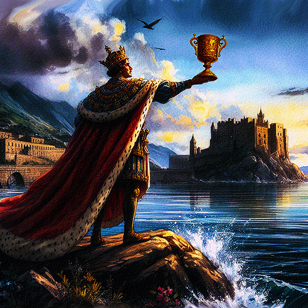 La scena rappresenta sullo sfondo a destra un castello normanno eretto sopra