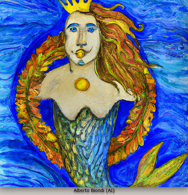 Colapesce forse è come lei: come lei, Colapesce soffre, spera, ride, piange e sorride; sta lì in fondo al mare schiacciato da un dovere più grande di lui, al quale non si rassegna, ma lui spera sempre; il suo sguardo e' altrove, oltre e sopra l'orizzonte, dove sono i suoi desideri; Lui vive e sogna e sognando vive e sopporta; Colapesce vive di poesia per non morire.... Come lei.