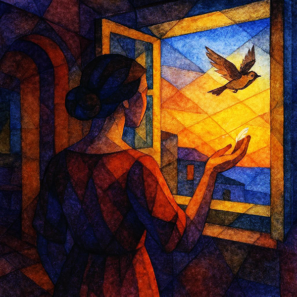 Viene sempre verso sera, senza annunciarsi, viene sempre, io l’aspetto con certezza. Si ferma all’angolo e mi fa l’occhiolino, poi, senza peso, spicca il volo e va lontano, ma mi lascia una piuma sulla mano.