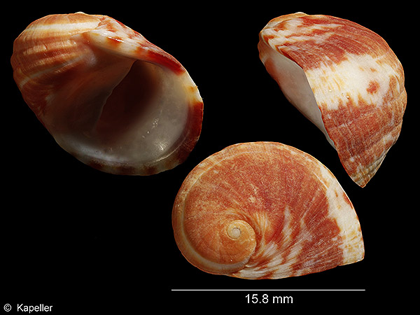 Conchiglia globosa, ovoidale, molto solida con spira bassa e ampia
