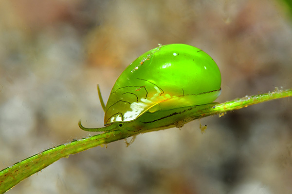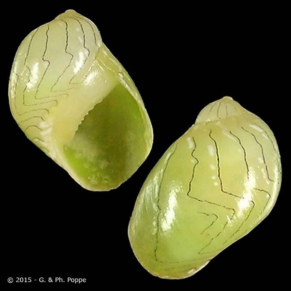 Specie piccola, intorno ai 7 mm, conchiglia fragile e di forma ovale depressa, di colore verde chiaro