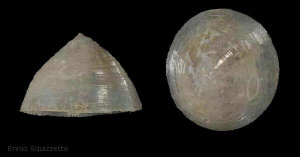 Conchiglia grande per il genere (fino a 4-5 mm di diametro), conica,