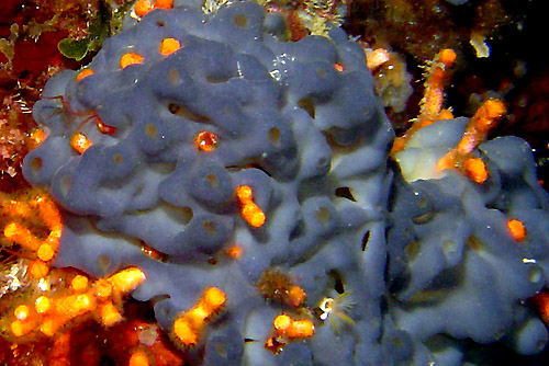 Si sviluppa con incrostazioni lobate a consistenza carnosa. Qualche volta di colore blu, più spesso bruno. Frequente su posidonia e su substrati rocciosi