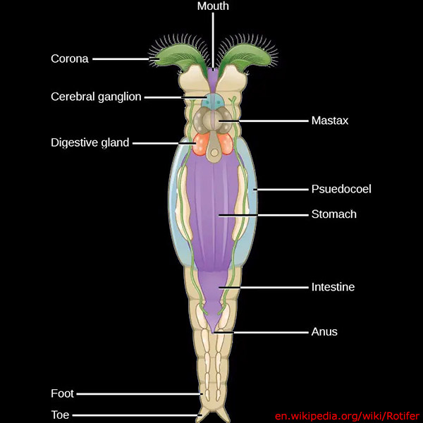 Il corpo dei rotiferi, lungo tra 01 e 04 mm,