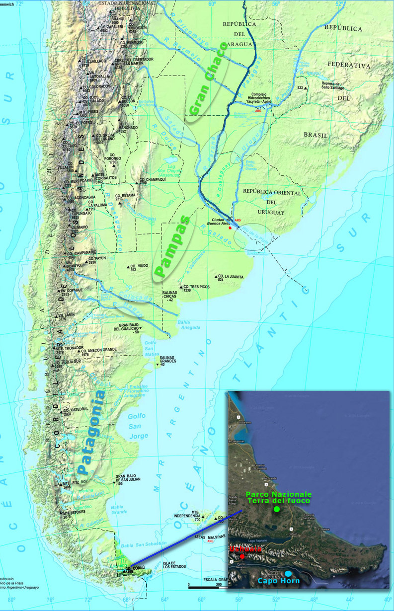 Nella parte più meridionale si trova la Terra del fuoco (nome