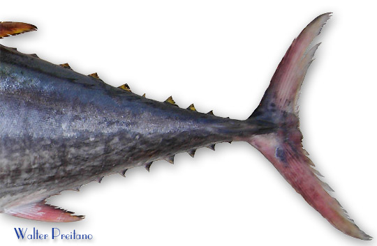 pinna caudale è potente e lunata, con lobi appuntiti. Pettorali e ventrali