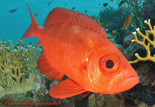 Il colore del corpo è uniformemente rosso scarlatto, compresa la testa e l'iride